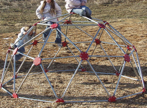 | SportsPlay Equipment is known for fun equipment of exceptional safety and durability. Since 1996 SportsPlay has been focused on maintaining the best value on the playground and in the neighborhood. We offer an unparalleled diversity in our product line - ranging from classic and modern play equipment to a full sports line and a new offering of thermoplastic site amenities. Were sure to have what you need for your play environment. The Geo Dome Climber is a classic playground event that children. love to climb on. The Geo Dome Climber is now offered with optional equipment of paint and brackets to add style to your playground. This unit is 4 feet high and uses 1 inch OD galvanized steel pipe. This comes unassembled with easy to read instructions. Add optional polyethylene connection bracket for added safety. Please Note that brackets will add height and width to your unit. Permanent climbers include an anchor kit. Permanent climbers are necessary for most commercial applications. You may order a Geo Dome Climber with brackets and custom paint. Use Zone: 20 diameter circle. Ages: 2-5 years. Ground Space: 8 diameter circle. Weight Limit: 1000 lbs.