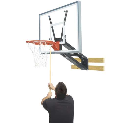 | For the look of a professional court at a budget price…Official size flex goal raises and lowers with ease on this system that features a 32" x 48" clear rectangular backboard • Direct mount goal design • No ladders or tools • 71/2' to 10' goal height adjusts from the playing surface • Entire system mounts easily to the wall with two load spreading struts • Customer supplies suitable wall mounting hardware • Mounts indoors/outdoors • 22" safe play area at 10'