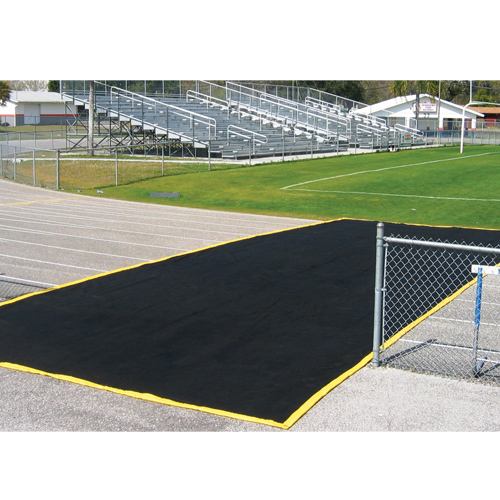 Saves modern track materials from damaging football cleats and other traffic. This easy-to-install temporary cover resists and cushions against steel-tipped football cleats yet allows rain to drain through. Made with a tough durable polypropylene non-woven fabric. Its entire edge is vinyl-wrapped and galvanized steel chain is inserted all around to keep this cover down in winds WITHOUT STAKES OR STAPLES that can damage the track. Color is Black with Gold edging. Price: 1109.47 ![]() |