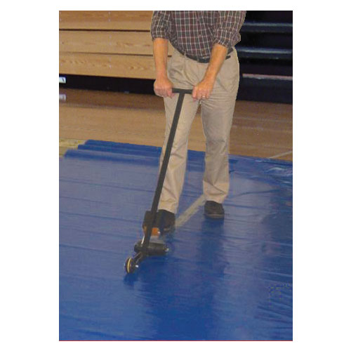 Walk behind tape dispenser for use with gym floor covers. Makes tape dispensing a walk in the park with this easy to use walk behind dispenser used to secure gym floor covers.