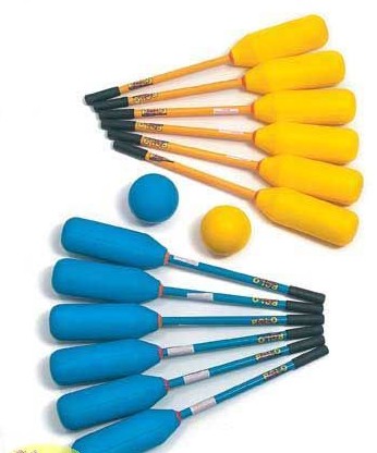 | Coated Foam Heads This Super Softouch-Polo Game includes 12 sticks (6 each; Blue and Yellow) with straight 11 L (27.9 cm) coated foam heads. Also includes two 7 (17.8cm) playballs. Price: 182.40 ![]() |