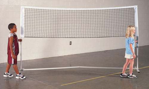 | Takes Portable Netting To A Higher Level Of Quality Deluxe QwikNet is the finest portable net system available. It sets up in either 20 (6.1m) or 10 (3m) configurations at heights of 36 (91.4cm floor-tennis/paddle sports) 61 (1.5m official badminton) and 72 (1.8m junior volleyball). By using structural aluminum we made the Deluxe s frame stronger more rigid and with fewer parts. It assembles in less than a minute holds significantly heavier-duty nets and keeps them perfectly taut at all heights. Two students can easily lift and carry a fully assembled Deluxe QwikNet to where it s needed and then out of the way when the activity has ended. Includes 20 and 10 (6.1m and 3m) heavy-duty nets and carry bag.