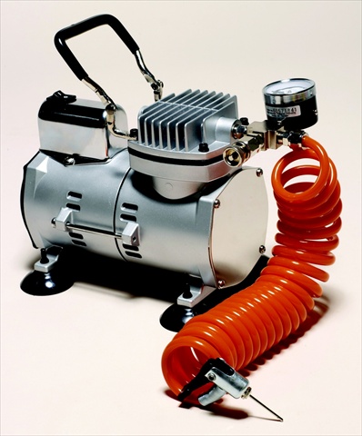 Features- Sportime Super-Duty 1/6 hp Mini-Compressor in a bright finish has metal construction for durability.