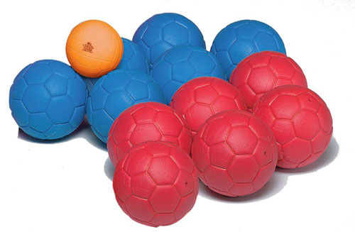 | Brings An Italian Classic Into Your Gym Ultimax SoftBocce is an amazing game of inclusion requiring an underhand toss of a weighted hand-held ball. The objective of the game is to place the ball(s) closest to the target (in this case a small target ball often called the jack). Variations on this concept are shared by numerous games played in different countries and include sports like boules curling and even marbles. However since competition Bocce balls have always been rock hard (made of wood or composites) the game is restricted to soft surfaces; predominantly outdoors on dirt clay or grass. What Does It Take To Bring Competitive Bocce Indoors? 1Install an indoor soft surface court. 2Have no concerns about changing your hardwood basketball or other floors into a moon-like surface. 3Purchase a set of SoftBocce. How Did We Do It? Using our world-famous Ultimax two-ply roto-molding process (see Ultimax in the index) we were able to mold the ball to official size while formulating the internal ply to duplicate the official weight. We were also able to formulate the outside ply to provide a soft foam all-floor-safe landing. Set includes 12 game balls (6 each of 2 colors) the Jack ball and carry case.