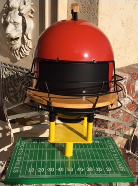 Touchdown 3000 and it is 14.5" Portable Charcoal BBQ Grill. It is made with 16 g cold rolled steel and reinforced for superior construction. The base is powder coated green and the field is silk screened on for that in the game feel. The uprights or stand is powder coated yellow for the extra point. The Charcoal bowl is ceramic coated for those high temperatures and the Helmet cover is painted with 700 degree paint to create that gridiron look. Features