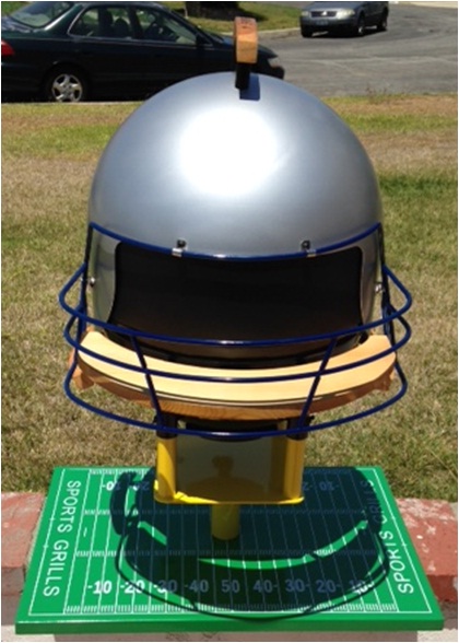 Touchdown 3000 and it is 14.5" Portable Charcoal BBQ Grill. It is made with 16 g cold rolled steel and reinforced for superior construction. The base is powder coated green and the field is silk screened on for that in the game feel. The uprights or stand is powder coated yellow for the extra point. The Charcoal bowl is ceramic coated for those high temperatures and the Helmet cover is painted with 700 degree paint to create that gridiron look. Features