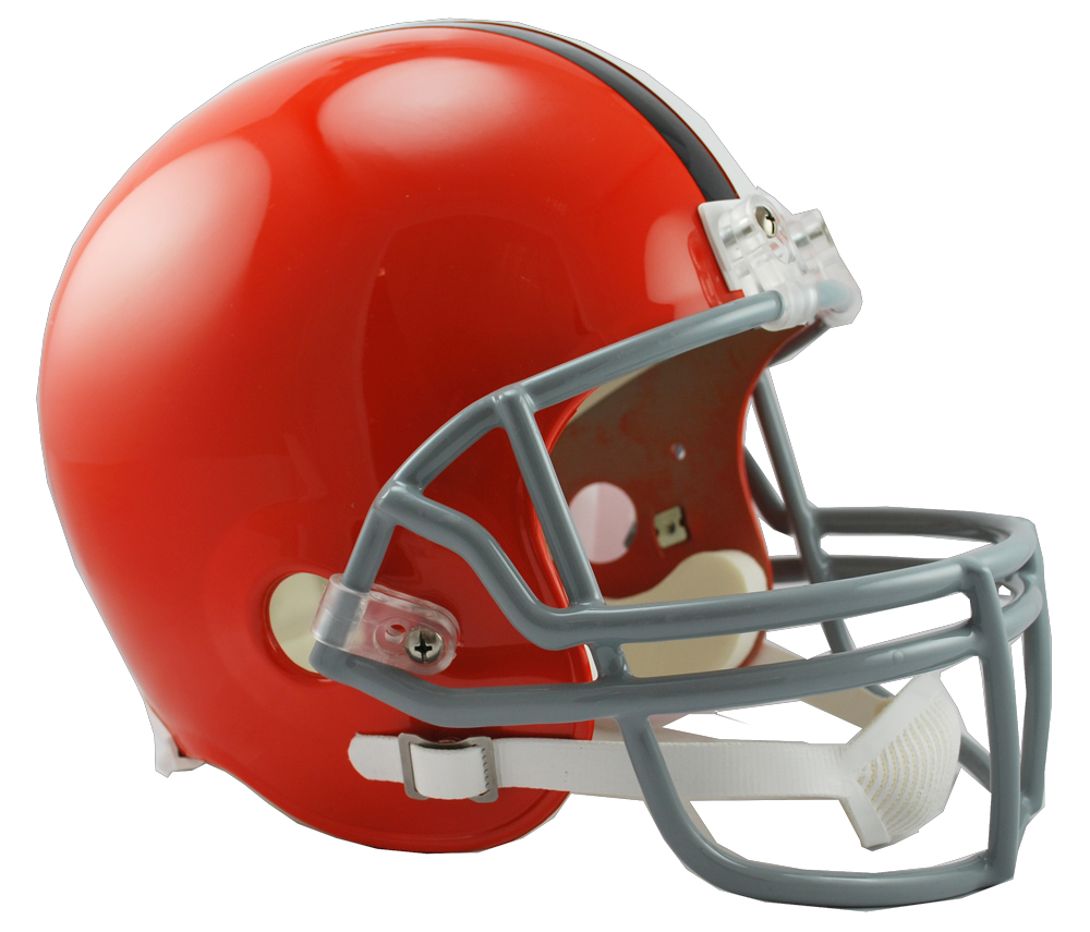 Sports Integrity works with various sports figures. Our product line features hundreds of unique collectables and has been directly involved in the sports memorabilia industry for the past two decades. Our auction services are ideal for all types of events from formal charity dinners golf tournaments and presented in an entertaining and professional style providing a fun approach and flair to fundraising. Featured is a Cleveland Browns full size replica helmet. Interior padding is decorative not functional. 2-pt. chinstrap. Not to be used for play. Features