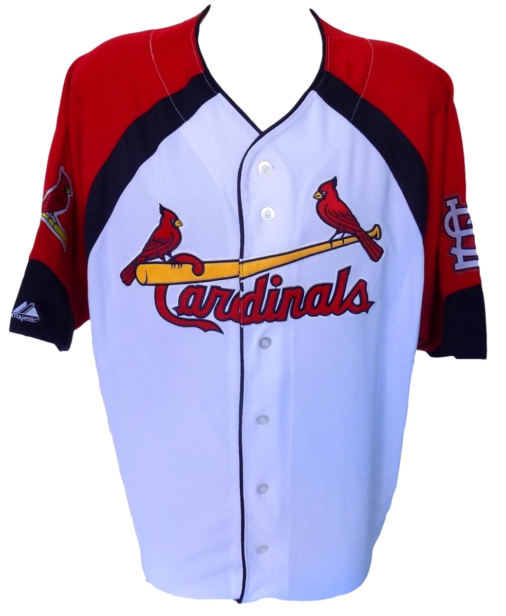 Sports Integrity works with various sports figures. Our product line features hundreds of unique collectables and has been directly involved in the sports memorabilia industry for the past two decades. Our auction services are ideal for all types of events from formal charity dinners golf tournaments and presented in an entertaining and professional style providing a fun approach and flair to fundraising. Featured is a St. Louis Cardinals replica jersey. This is a Majestic jersey and is size 2XL. Features