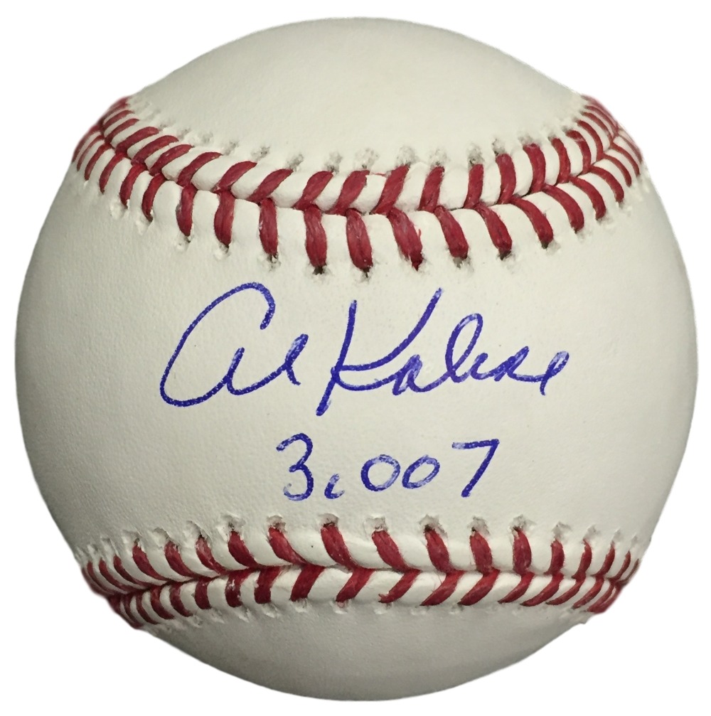 Sports Integrity works with various sports figures. Our product line features hundreds of unique collectables and has been directly involved in the sports memorabilia industry for the past two decades. Our auction services are ideal for all types of events from formal charity dinners golf tournaments and presented in an entertaining and professional style providing a fun approach and flair to fundraising. Featured is an Al Kaline signed Rawlings Official MLB Baseball which he inscribed 3007. This baseball is certified by JSA and have their hologram and matching Certificate of Authenticity. The baseball is an official MLB baseball. Kaline was inducted into the Hall of Fame in 1980. Features
