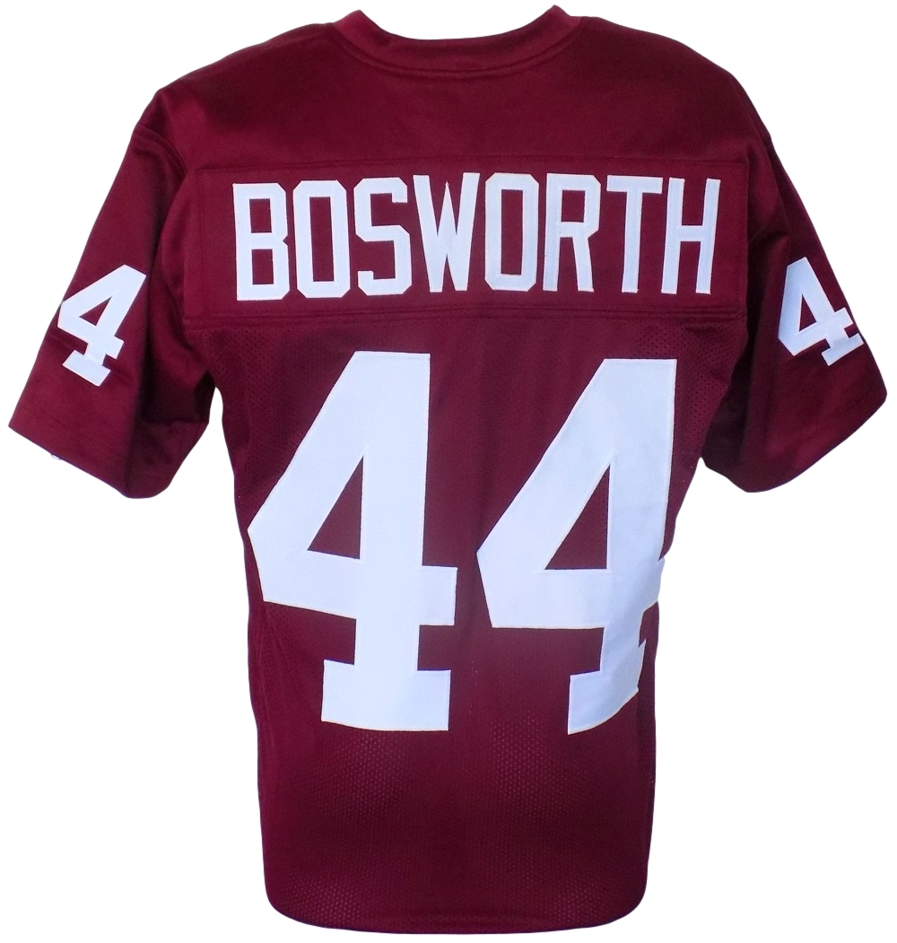 Sports Integrity works with various sports figures. Our product line features hundreds of unique collectables and has been directly involved in the sports memorabilia industry for the past two decades. Our auction services are ideal for all types of events from formal charity dinners golf tournaments and presented in an entertaining and professional style providing a fun approach and flair to fundraising. Featured is a Brian Bosworth custom football jersey. This jersey has professionally sewn letters and numbers and is size 2XL. This is not an NFL jersey. It has no logos tags or emblems. It is intended to be used as a sports collectible. Features