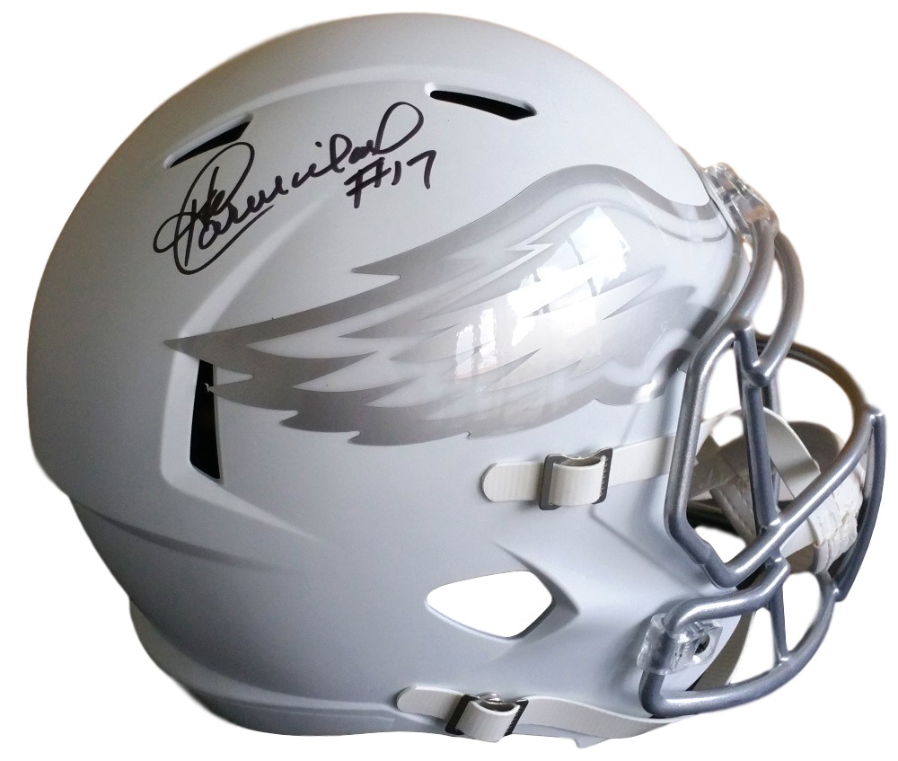 Sports Integrity works with various sports figures. Our product line features hundreds of unique collectables and has been directly involved in the sports memorabilia industry for the past two decades. Our auction services are ideal for all types of events from formal charity dinners golf tournaments and presented in an entertaining and professional style providing a fun approach and flair to fundraising. Featured is a Harold Carmichael Signed Philadelphia Eagles ICE Speed Mini Helmet. This item has been hand signed by Harold Carmichael and includes a Beckett hologram and certificate of authenticity. In 1980 he set an NFL record at the time by catching passes in 127 consecutive NFL games. He was also the Eagles' top receiver of Super Bowl XV with six catches for 91 yards. Features