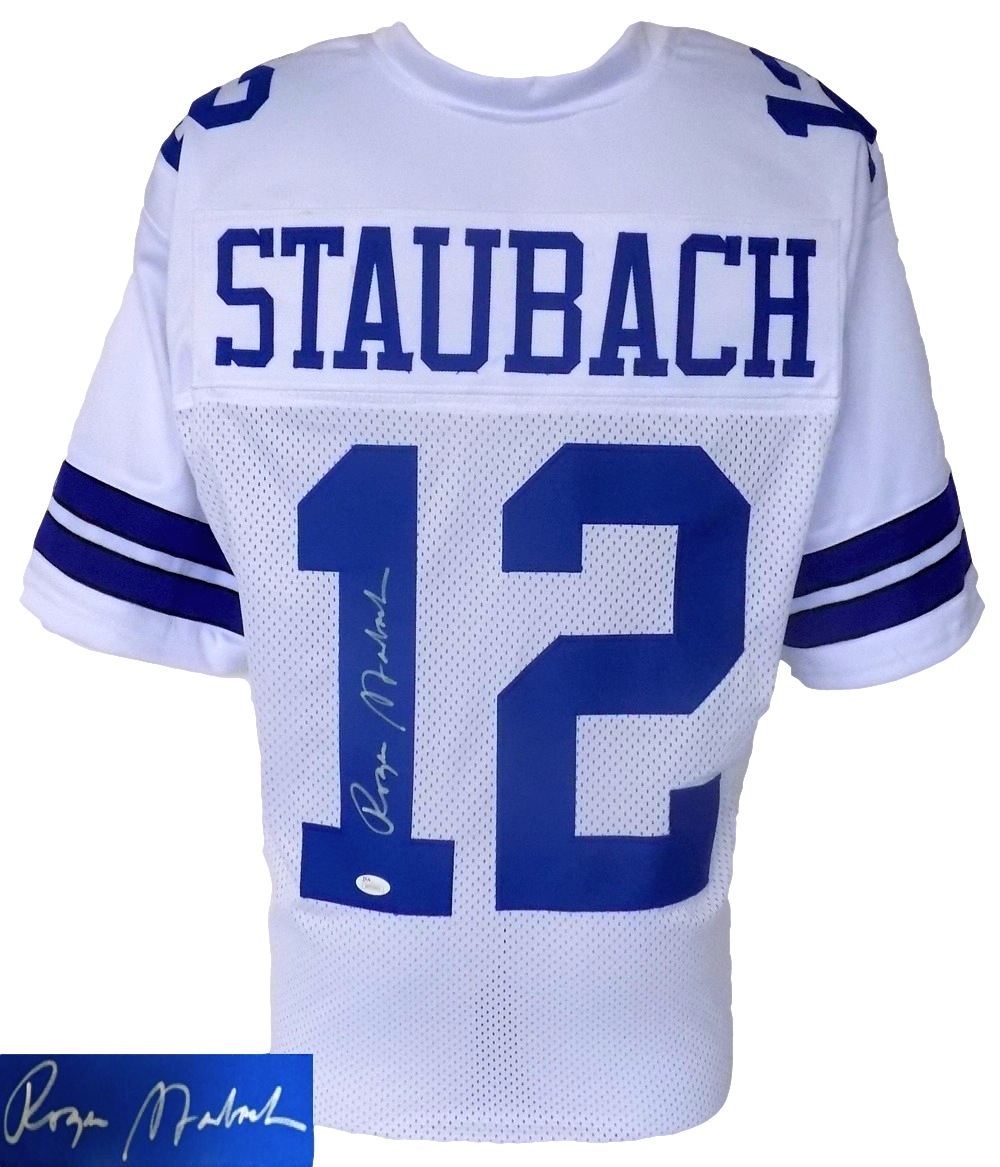 We Provides a full line of hand-signed memorabilia photo products. We have established ourselves as a reputable trustworthy and reliable offering Authentic photo Memorabilia. We provide everyone to enjoy shopping with trust safety and confidence. Every item is accompanied by a certificate of authenticity on the item. We value for our user requirements and we work for it every day. This jersey has professionally sewn letters and numbers. This jersey is certified by JSA and comes with their hologram and certificate of authenticity. This is not an NFL jersey. It has no logos tags or emblems. It is intended to be used as a sports collectible. Staubach joined the Dallas Cowboys in 1969 and played with the club during all 11 seasons of his career. He led the team to the Super Bowl five times four as the starting quarterback. Features