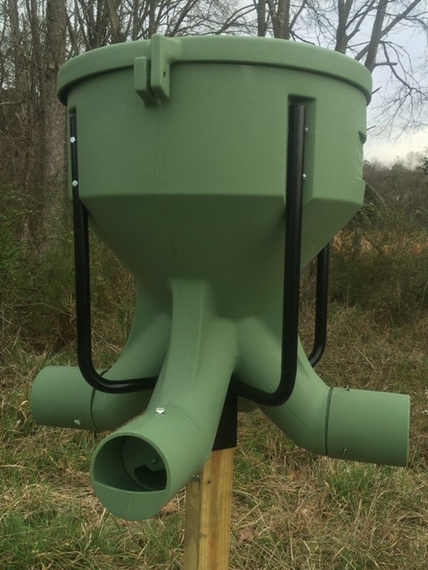 The MAX-250 is a 4 tube gravity-fed feeding system that holds 250 pounds. This feeder has been proven effective through years of use in deer research facilities. Features- Extended tube to reduce antler damage