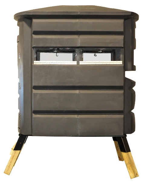 The Sportsman's Condo Two-Person Hunting Blind and Stand features solid-blind technology which translates to a stronger quieter scent-controlled blind. This outfitter-tested hunting tree stand arrives fully assembled so there is no difficult setup. Simply insert pressure-treated posts into the metal base system to elevate the blind to up to 10 ft. The solid one-piece construction means ample maintenance-free use. Durable construction enables use in all weather conditions without rust or decay. With room for two people this tree stand blind allows you to share the hunting experience with your friends and family. The Sportsman's Condo Two-Person Hunting Blind and Stand features three built-in shelves for easy storage. A full-size lockable door provides easy entry and exit as well as added comfort safety and security. Features