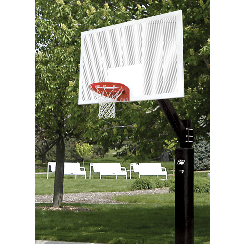 | Try an Ultimate System on your most demanding outdoor court and you’ll never need to buy another basketball system… From the massive black powder coated 6" square 3/16" wall pole that buries a full 4' into the ground for incredible stability to the tip of the Ultimate goal that carries an unconditional lifetime warranty these systems are meant to take the abuse common on today’s playgrounds • All fixed height Ultimate systems feature a full 60” setback for maximum player safety and offer optional backboard and pole padding • New 42" x 72" perforated steel backboard gives your court another long-term Ultimate option. Lifetime Limited Functional warranty. Price: 4759.90 ![]() |
