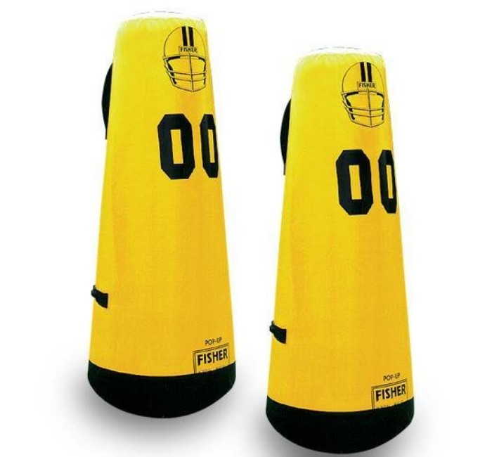 Designed to speed up drills giving players quicker execution and allowing more repetitions with safety in mind. Quality workmanship and materials make this piece of practice equipment a great value for your program like having extra assistants or players during your practices cutting down on dead time between drills. 4 carrying handles for easy carrying and transporting. Heavy protected base allows dummy to "pop" back up after contact. Rubber coating on base won't bruise or sting players lower body. 3 layer 18oz vinyl base. Specify color. Price: 753.00 ![]() |